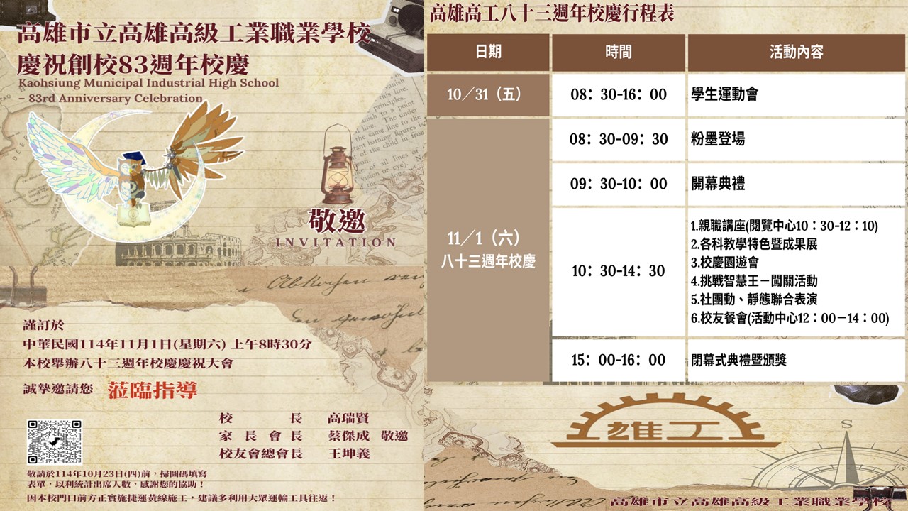三、辦公地點:高雄市立高雄高級工業職業學校(地址:高雄市三民區建工路419號)。